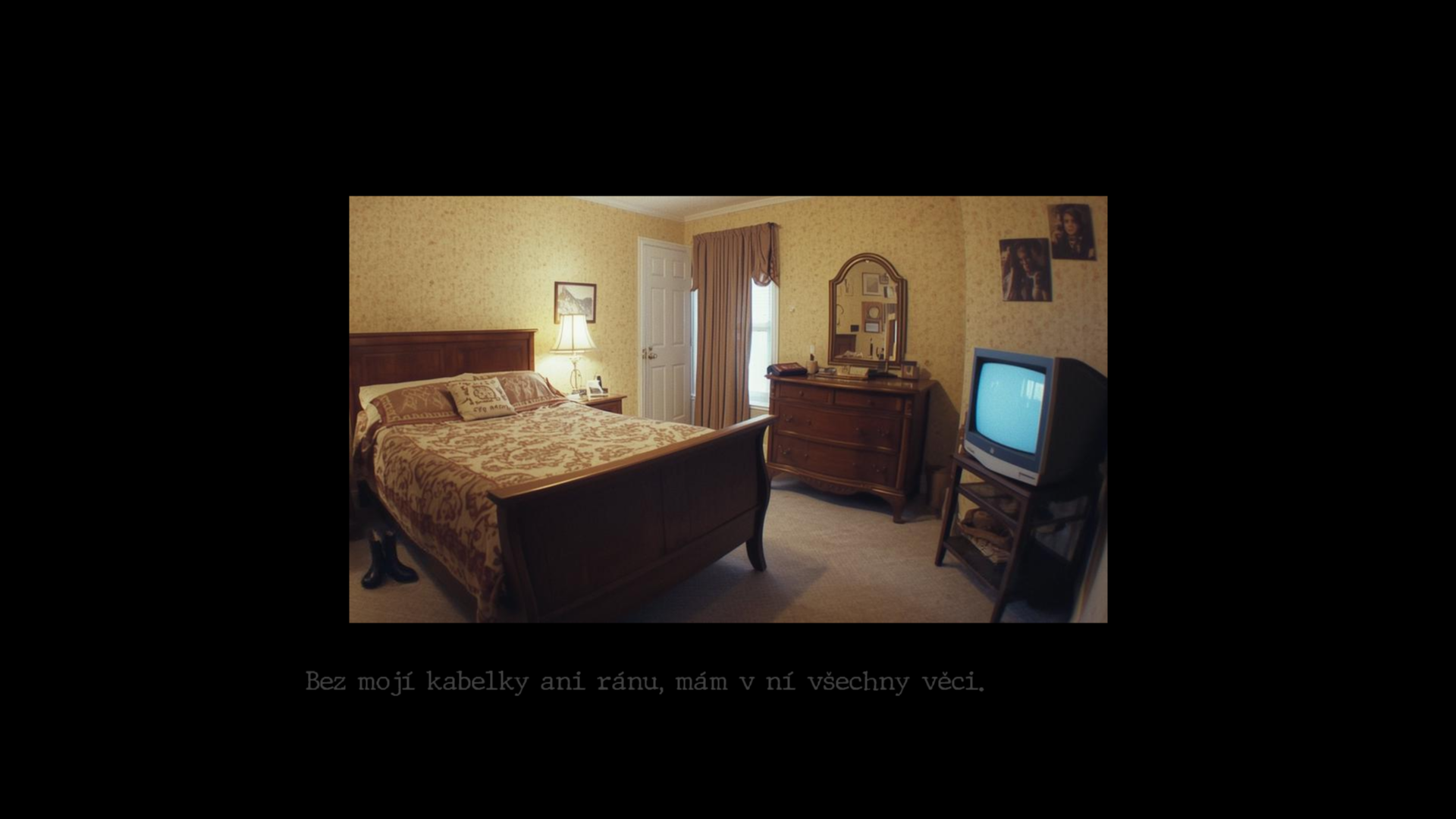 Skvělý audiovizuál, atmosféra a příběh. Texty bych ještě prohnal kontrolou, chybné použití i/y hodně bije do očí třeba u vecere_scene, kde se to střídá každou větou, na konci zase NEZNÁMÍ MUŽ. Jinak klobouk dolů a Louny by měly začít sponzorovat:)